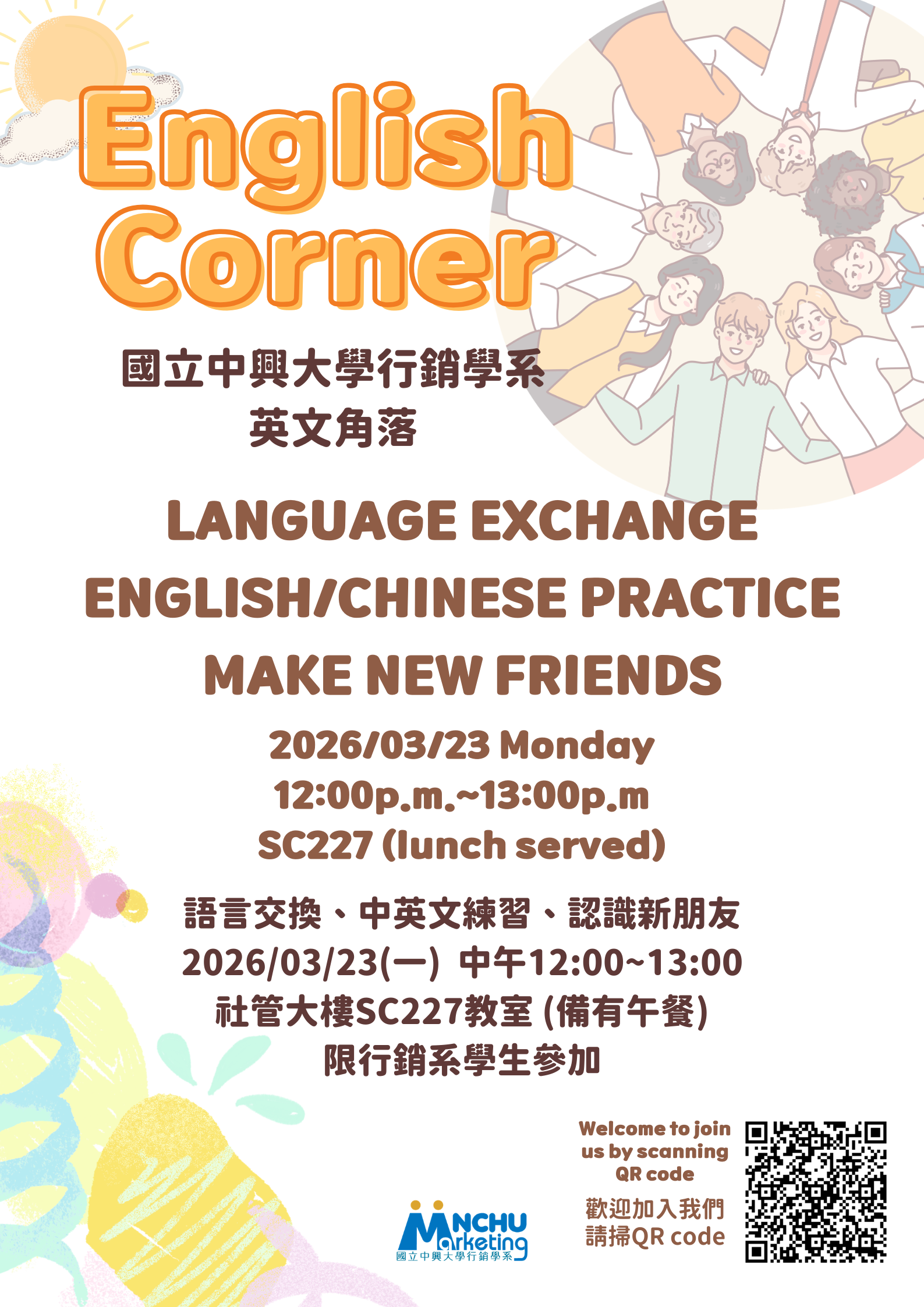 English Corner 是一個輕鬆的語言交流活動,
